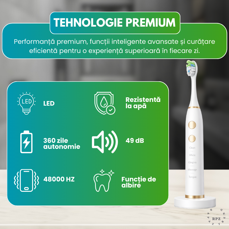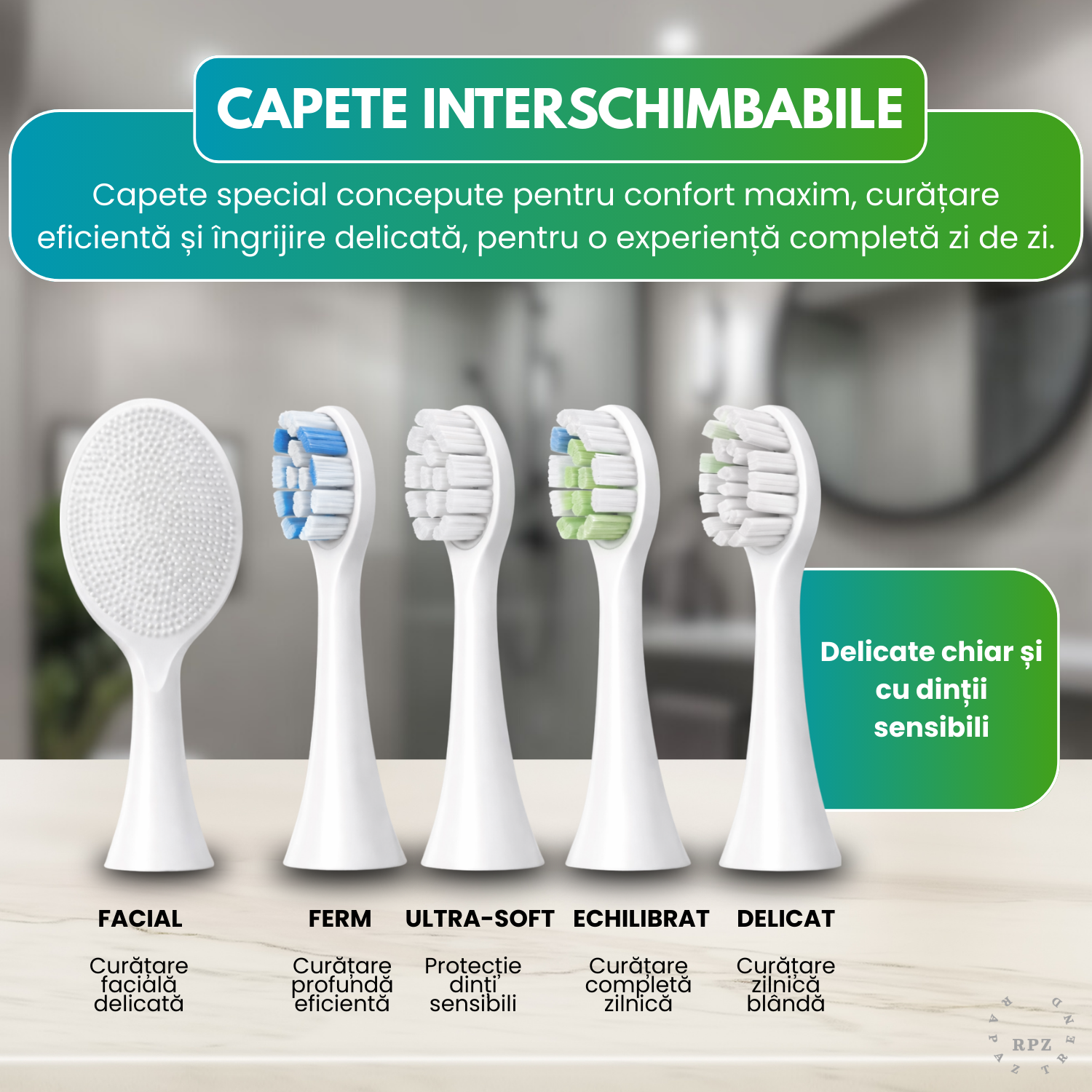 - Functii: Waterproof, Deep Cleansing, Smart, Teeth Whitening, High Frequency Vibration