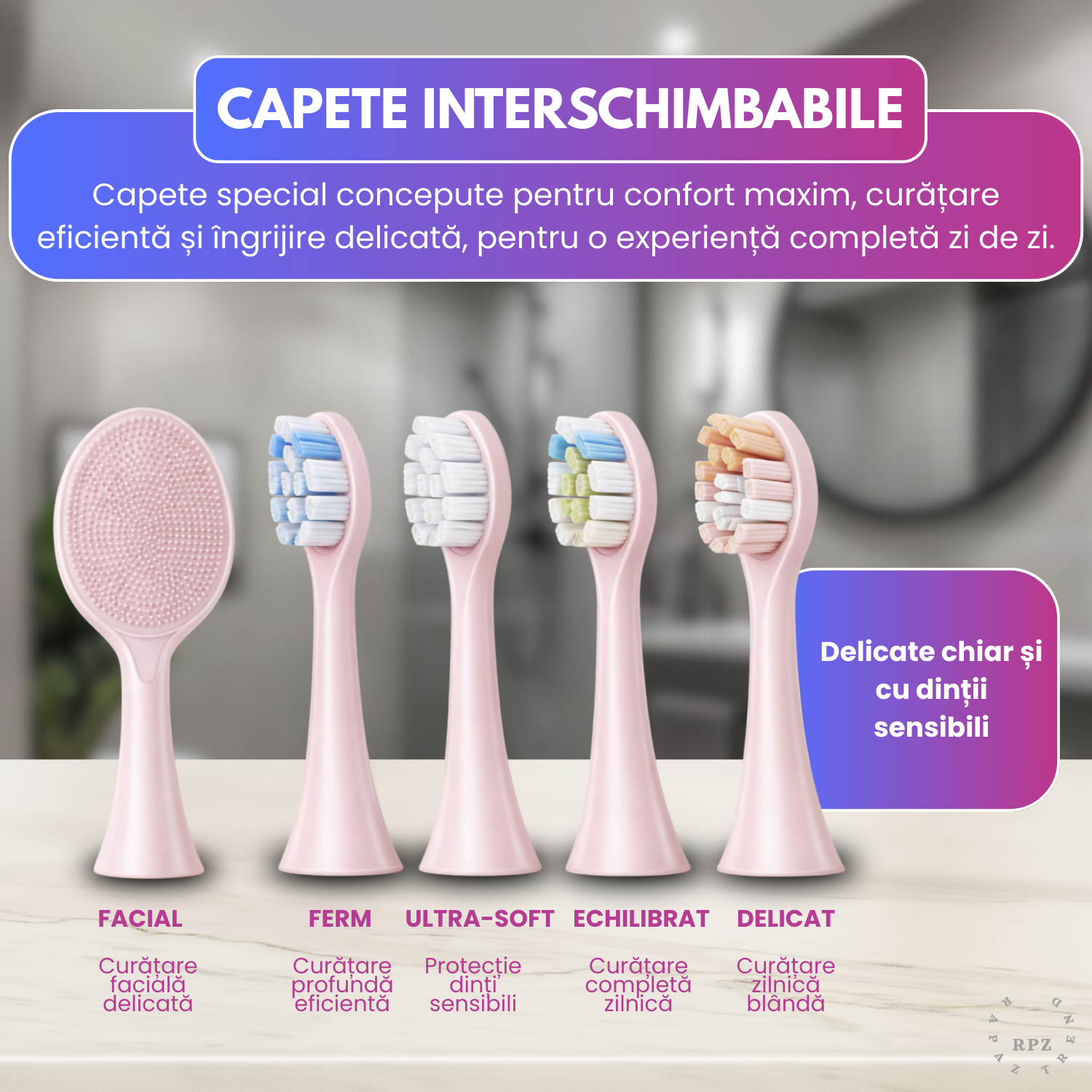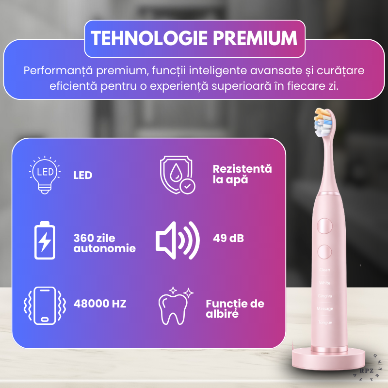 Funcții: Waterproof, Deep Cleansing, Smart, Teeth Whitening, High Frequency Vibration