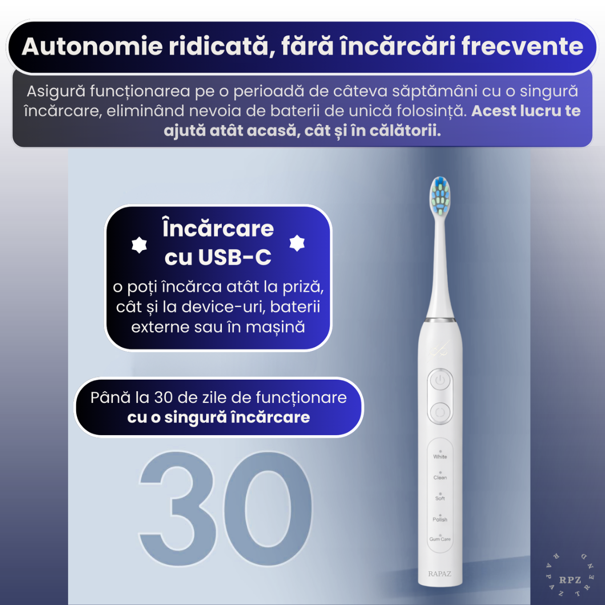 - Tip produs: Periuta de dinti sonica electrica Rapaz