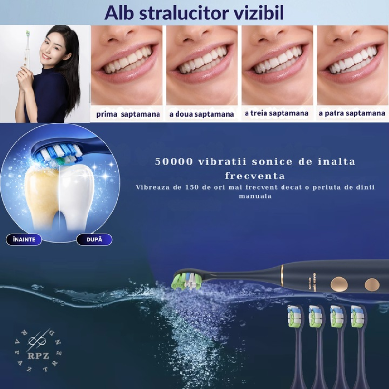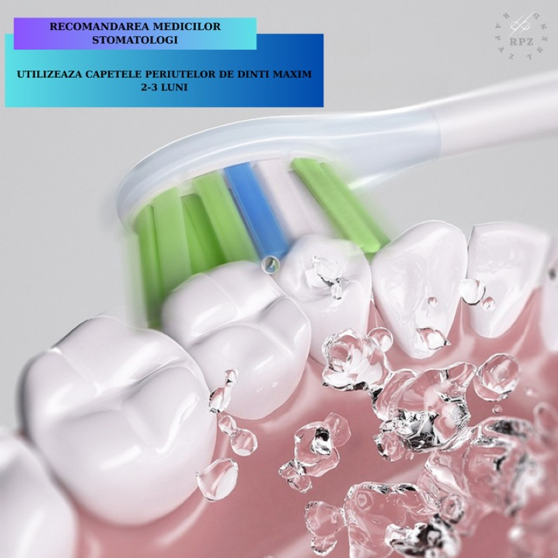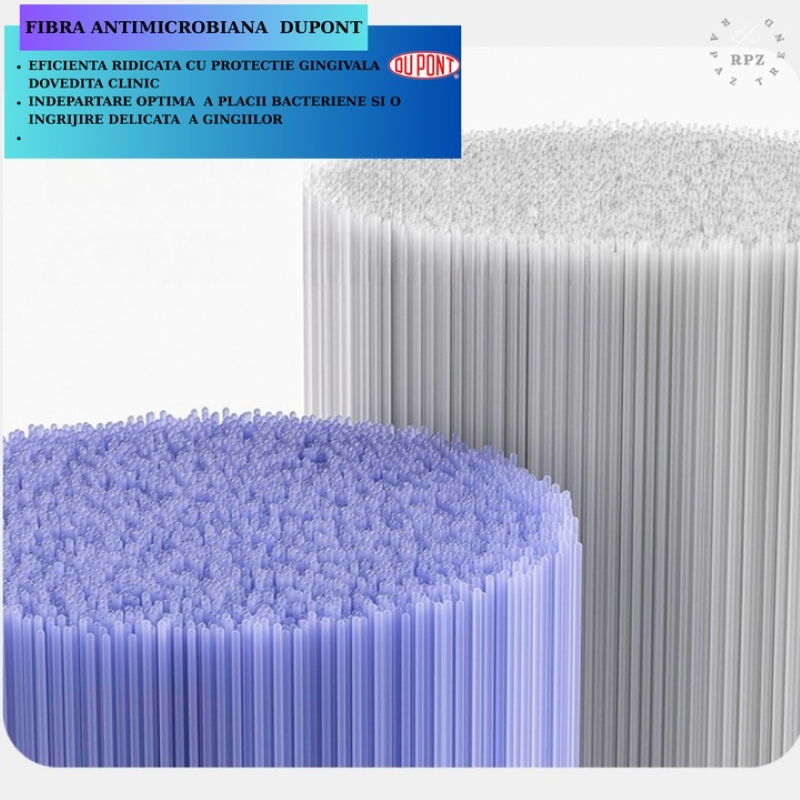 Indeparteaza eficient placa bacteriana si tartrul, ajutand la prevenirea cariilor si a problemelor gingivale.