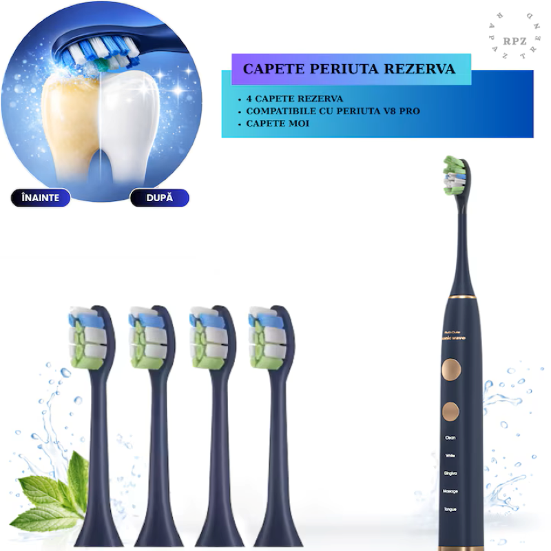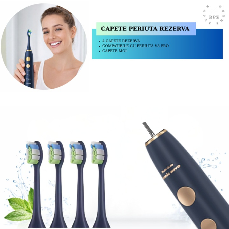 Rezerve Periuta De Dinti Electrica Sonica Rapaz SmilePro , Model V8 PRO, 4 bucati, ALB